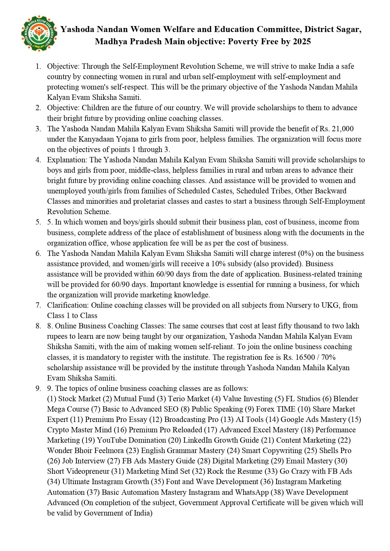 At Yashoda Nandan Mahila Kalyan Evam Shiksha Samiti, our mission is to uplift the deprived sections of society while simultaneously working towards creating a healthier and more sustainable environment. Over the past decade, we have dedicated ourselves to the causes of women’s empowerment, child education, anti-corruption, water conservation, plantation, and animal welfare, with an unwavering commitment to making a meaningful difference.